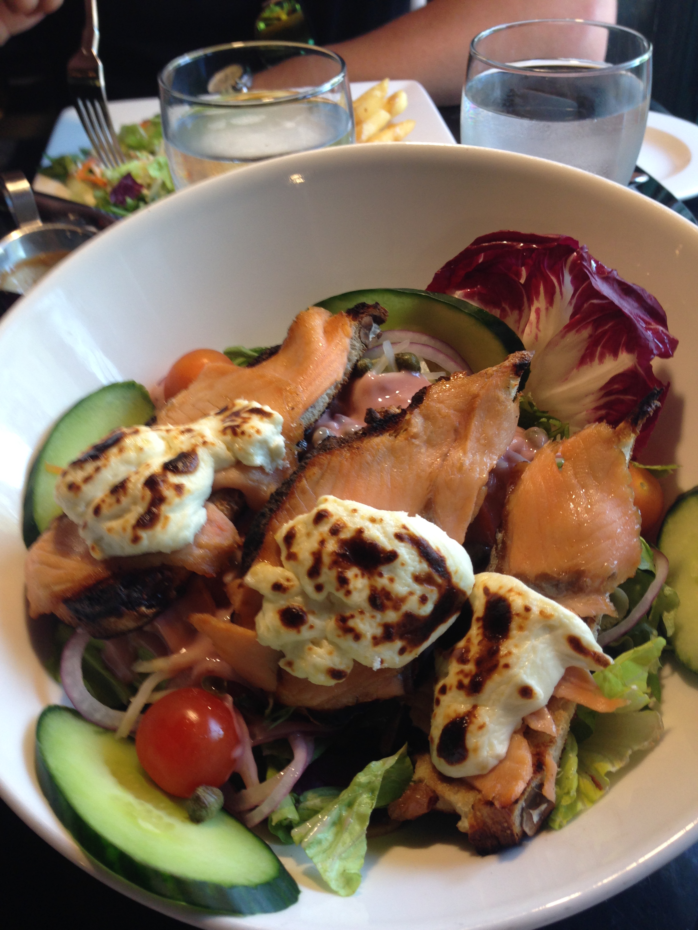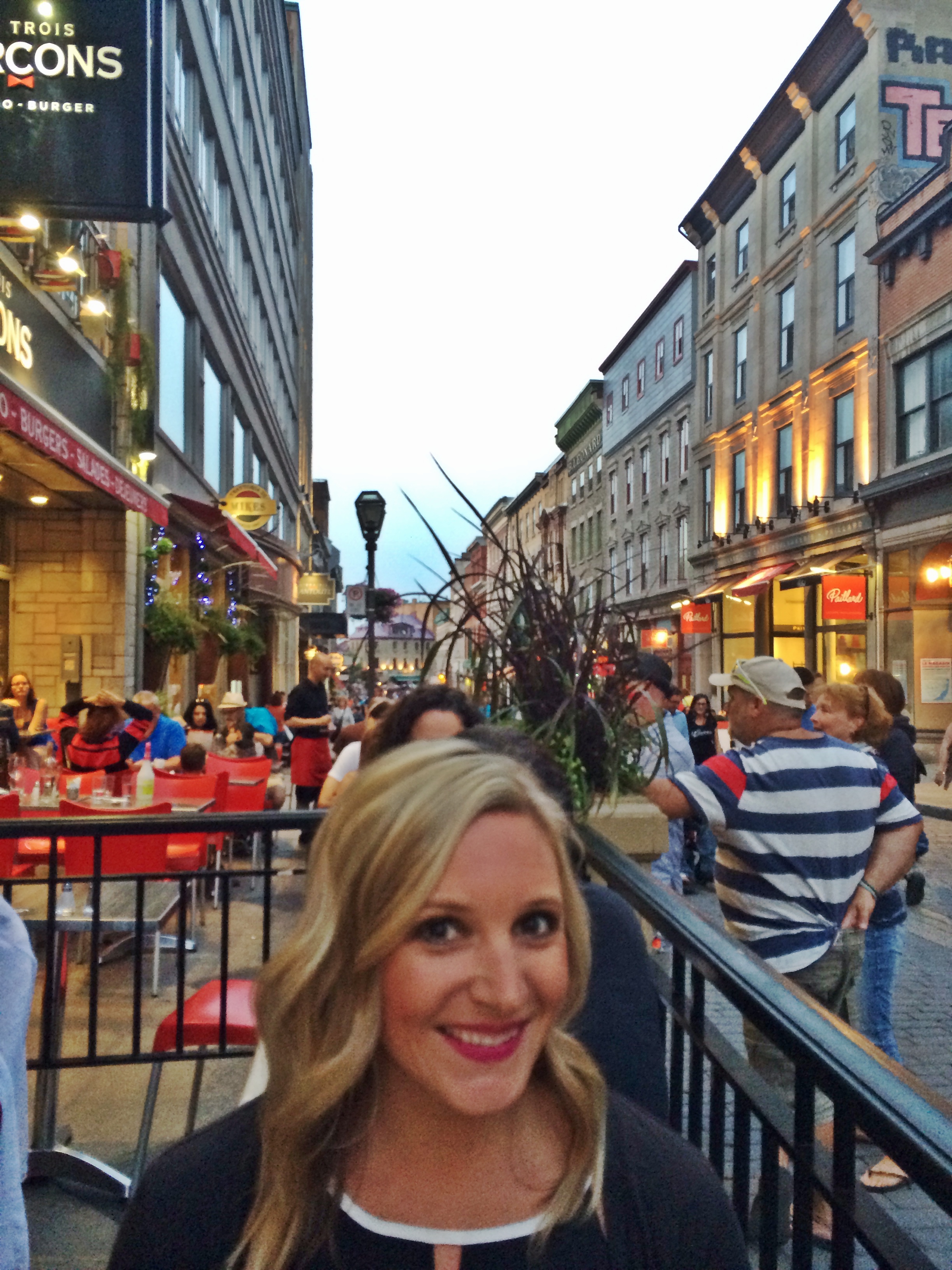And then there was the cuisine. For our first Québec meal, we picked a restaurant on a whim. The place sat on the corner, across from the first church we’d visited. It looked cute, with tables resting neatly, but cozily, under the wide open windows. We got lucky, snatching up a great table under one of them. Perfect view to take in the sights and people-watch. The menu was in French, but we lucked into English subtitles under each menu item. I’m a sucker for anything goat cheese, so I picked a smoked salmon goat cheese salad. Oh. My. Gosh. This is the moment I realized all the rumors about Québec are true: the food is unbelievable.